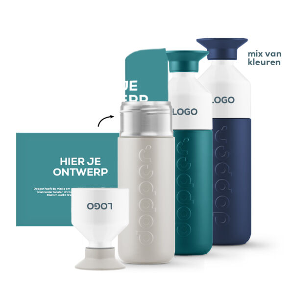 | Bedrukkingsinformatie | Jouw logo of tekst wordt bedrukt op de cup van de Dopper. Tamponprint in 1 of 2 kleuren formaat 30 x 35 mm (horizonaal of verticaal) of Digitaal bedrukt in full colour van klein formaat tot rondom de cup. |