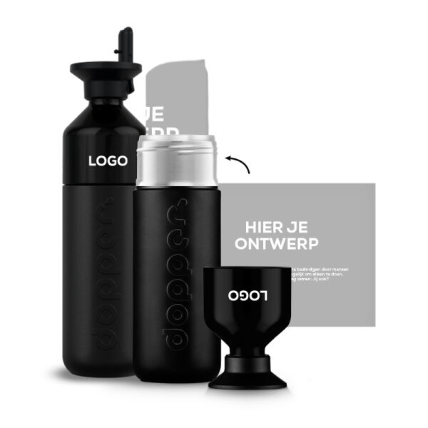 | Bedrukkingsinformatie | Jouw logo of tekst wordt bedrukt op de cup van de Dopper. Tamponprint in 1 of 2 kleuren formaat 30 x 35 mm (horizonaal of verticaal) of Digitaal bedrukt in full colour van klein formaat tot rondom de cup. |