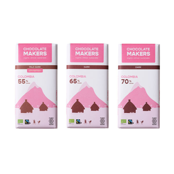 Milde pure chocolade met een snufje kaneel. De bonen komen van vrouwencoöperaties in Colombia, behorende tot de inheemse Arhuaco bevolking, die nu mede dankzij de cacao stabiele inkomsten hebben.