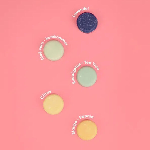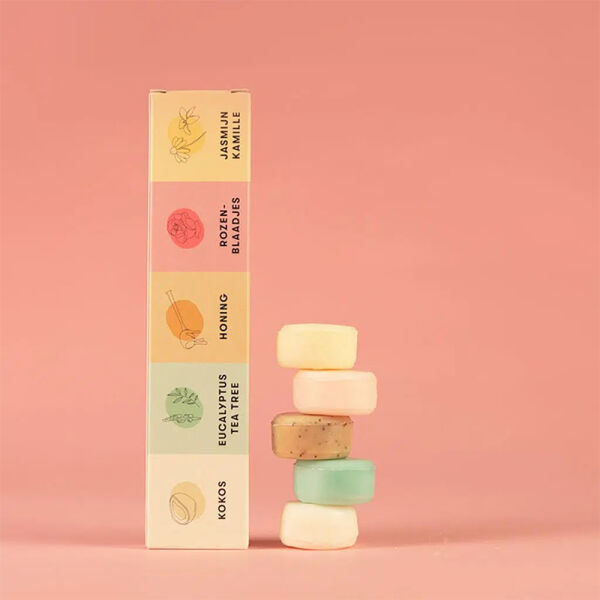 Het Proefpakket met Mini Shampoo Bars is de perfecte kennismaking met plasticvrije haarverzorging. Vijf kleine bars in verschillende geuren om uit te proberen welke het beste bij jouw haartype en voorkeur past. Ideaal om cadeau te geven of mee te nemen op reis. Inhoud: Lavendel, Eucalyptus & Tea Tree, Aloë Vera & Komkommer, Citrus en Mango & Papaja.