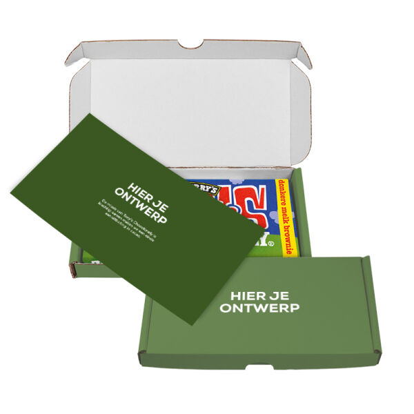 | Bedrukkingsinformatie | Het kaartje wordt full colour enkelzijdig bedrukt met jullie eigen tekst en logo. Het doosje is onbedrukt. Het is ook mogelijk om het doosje te voorzien van een etiket met adressering. |