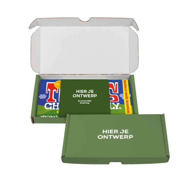 De Special Tony’s repen worden verpakt in een (wit of bedrukt) doosje dat door de brievenbus past. In het doosje zit de reep met een kaartje of een persoonlijke wikkel (breed of smal) met een eigen design.