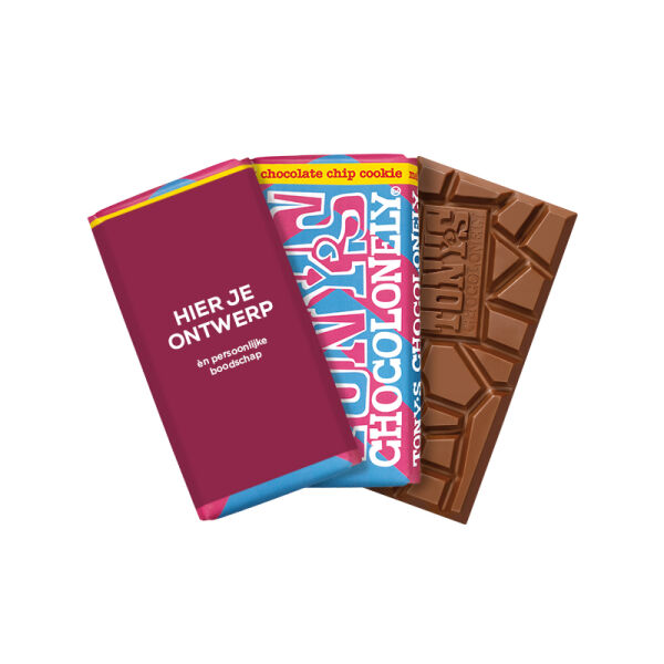 Om de Exclusive reep komt een smalle of brede wikkel. met compleet eigen fullcolour design. Wij verpakken deze om de originele verpakking, zodat je een echte Tony's Chocolonely weggeeft, met een eigen boodschap! Dat is nog eens leuk geven!