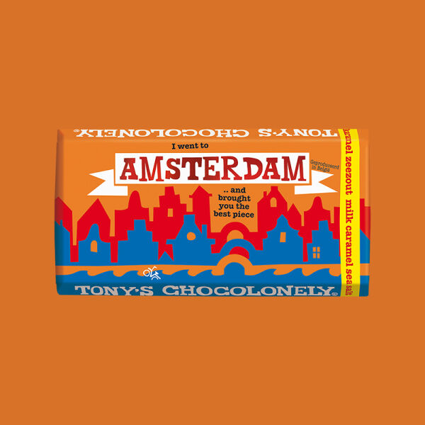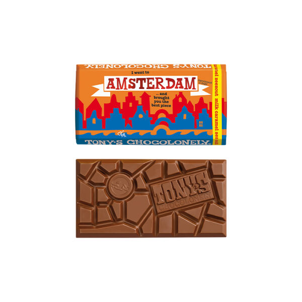 - Tony's Chocolonely 180 gram met wikkel - Exclusive - Melk Karamel Zeezout 'Amsterdam'