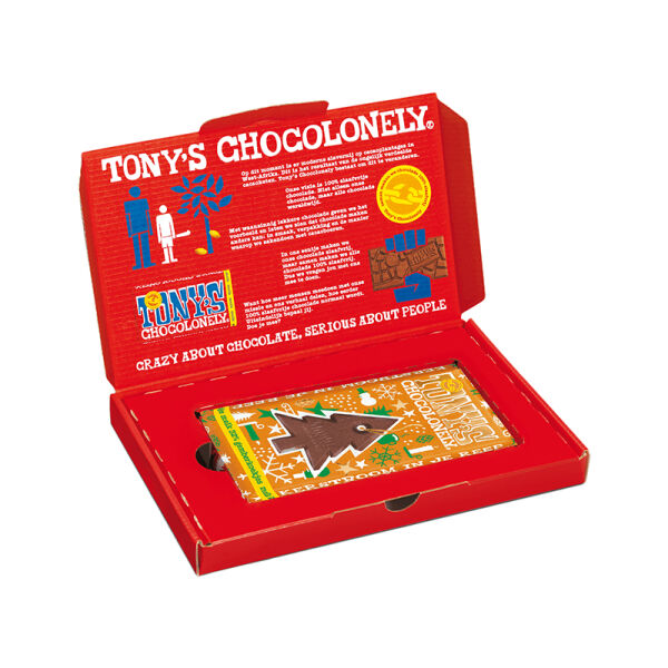 Verras deze feestdagen met de Tony’s Kerst Giftbox, een cadeau vol chocolade! Deze box bevat een verrukkelijke kerstreep, verpakt in een kerstverpakking. Perfect om als attentie uit te delen tijden een kerstborrel, als cadeau onder de kerstboom of als verrassing op deurmat van iemand die je deze kerst extra wilt verwennen.